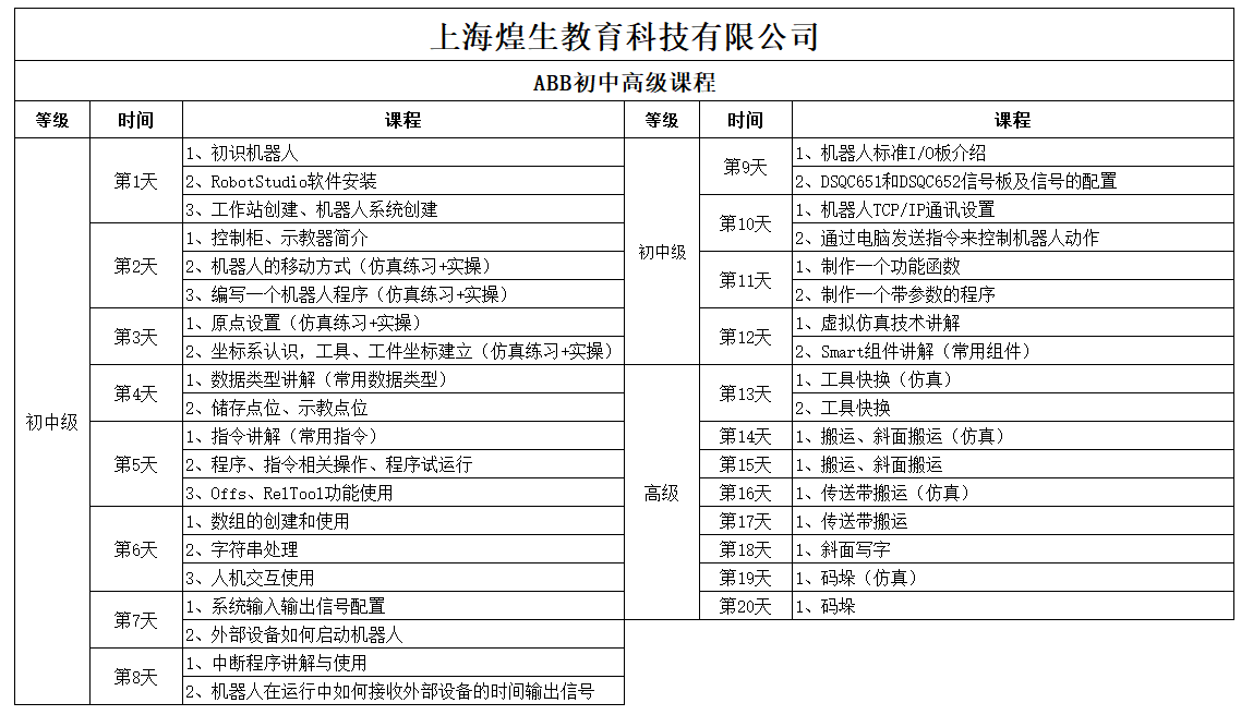 4、完善的课程体系:课程分为ABB机器人、发那科机器人、拓斯达机器人等等,满足不同学习目标的学员需求。